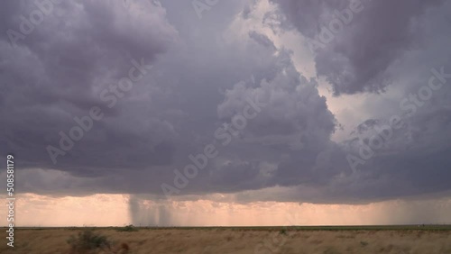 The watermark will not be included on Wall mural.: View of rainstorm in west texas from vehicle while storm chasing moving in slow motion -