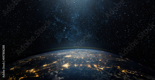 Wall mural view of the earth, star and galaxy. sunrise over planet earth, view from space. concept on the theme