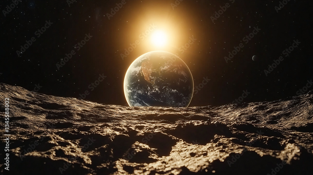 The watermark will not be included on Wall mural.: View of the earth from the surface of the moon