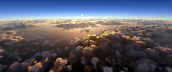 Wall mural view of the moon over the clouds from a plane