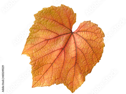 Wall mural vine leaf in autumn fall colour png stock photo file cut out and isolated on a transparent backgroun