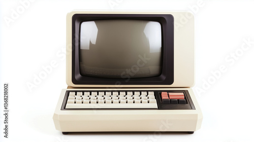 The watermark will not be included on Wall mural.: Vintage and retro computer with keyboard and monitor screen isolated on white background, selective