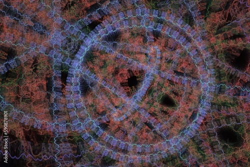 Wall mural Violet red pattern of crooked waves on a black background. Abstract fractal 3D rendering