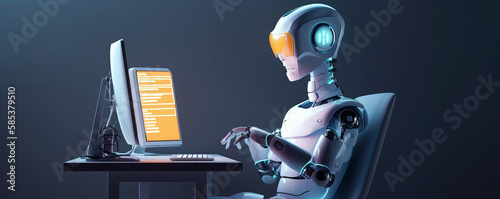Wall mural virtual assistant on the job. 3d illustration of an ai chatbot working and chatting in computer. gen - Wall murals Wall mural virtual assistant on the job. 3d illustration of an ai chatbot working and chatting in computer. gen - Wall murals