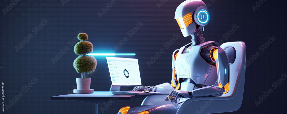 Wall mural virtual assistant on the job. 3d illustration of an ai chatbot working and chatting in computer. gen - Wall murals Wall mural virtual assistant on the job. 3d illustration of an ai chatbot working and chatting in computer. gen - Wall murals