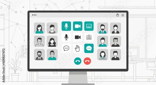 Wall mural virtual meeting platform interface displayed on a computer screen, connecting remote individuals - Wall murals Wall mural virtual meeting platform interface displayed on a computer screen, connecting remote individuals - Wall murals