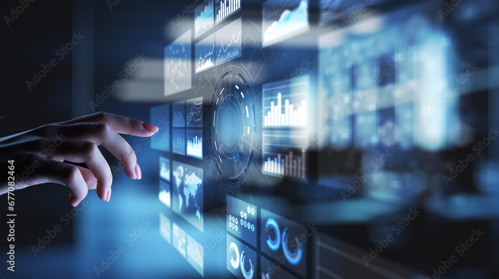 The watermark will not be included on Wall mural.: Virtual screen business intelligence dashboard, analytics and big data technology concept -