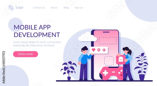 The watermark will not be included on Wall mural.: Virtual world development, mobile games development - programmers are working on creating the game - m