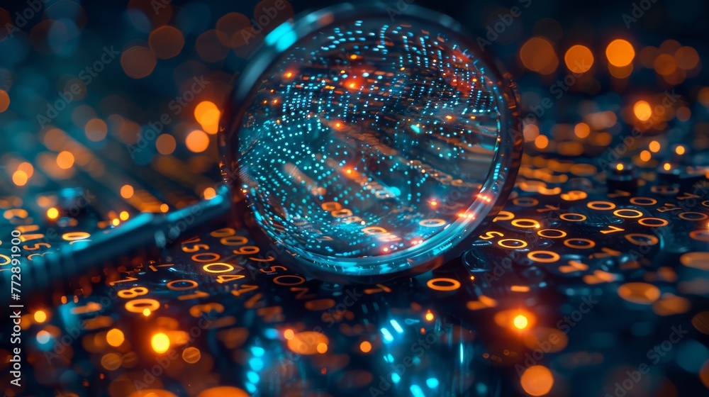 Wall mural virus scanning concept, realistic magnifying glass on binary code - Wall murals Wall mural virus scanning concept, realistic magnifying glass on binary code - Wall murals