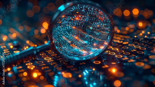 Wall mural : Virus scanning concept, realistic magnifying glass on binary code