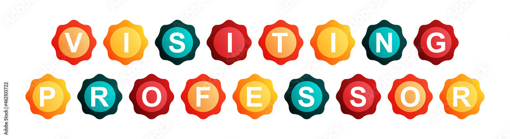 Wall mural : Visiting professor - text written on beautiful isolated colourful shapes with white background