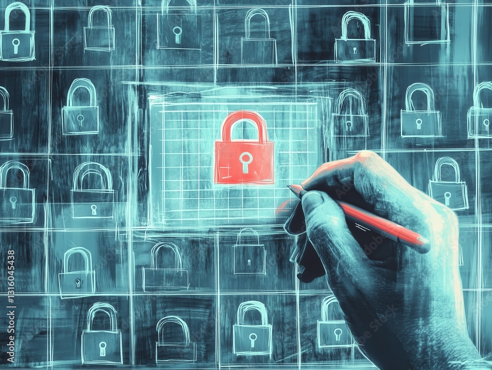 Wall mural visual depiction of cybersecurity measures showcasing a focus on data protection and access control