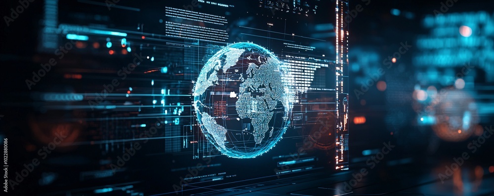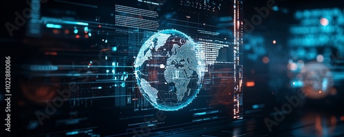 Wall mural visual of a digital interface showing economic policy scenarios with outcomes projected on a global  - Wall murals Wall mural visual of a digital interface showing economic policy scenarios with outcomes projected on a global - Wall murals