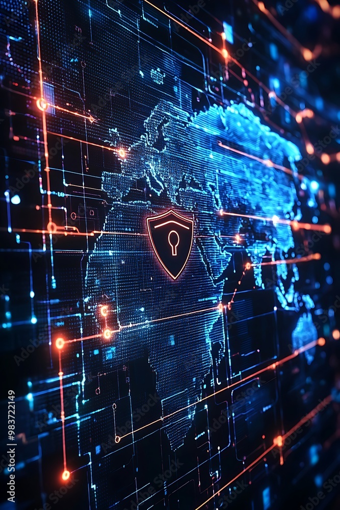 Wall mural visual of protective measures in cybersecurity across a global network. - Wall murals Wall mural visual of protective measures in cybersecurity across a global network. - Wall murals