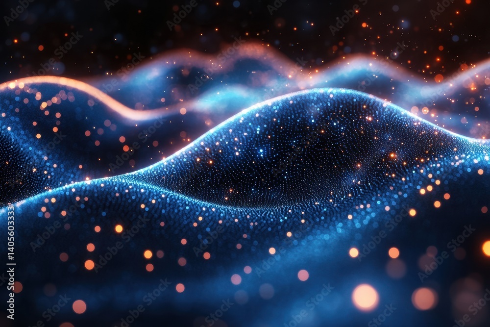 Wall mural visual representation of dynamic waves with glowing particles creating a captivating flow at night - Wall murals Wall mural visual representation of dynamic waves with glowing particles creating a captivating flow at night - Wall murals
