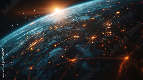 Wall mural : Visualizing a global digital grid with internet connections and networks linking international airli