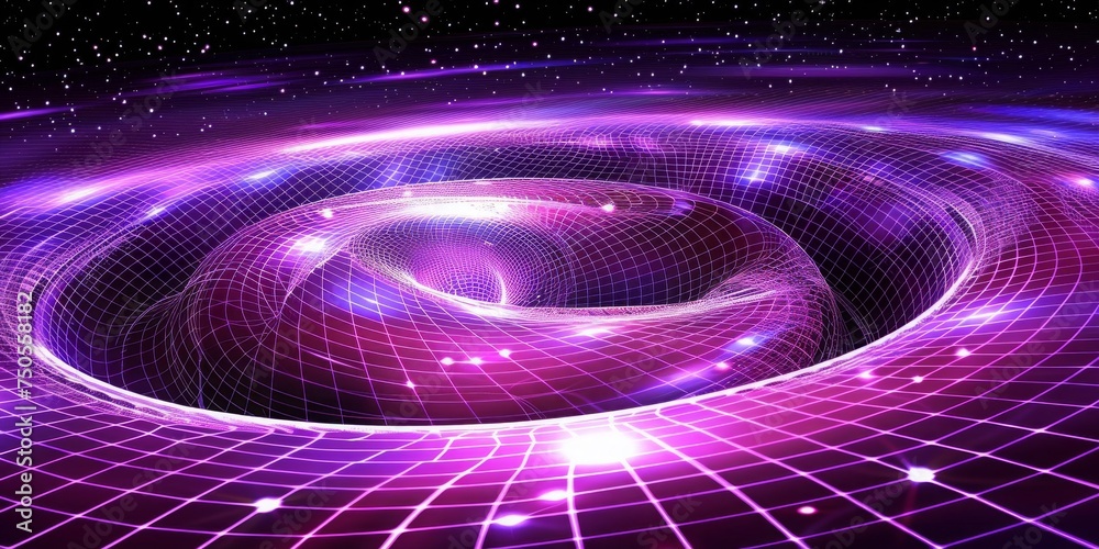 Wall mural visualizing a quantum warp in space-time continuum with a gravitational vortex, generative ai