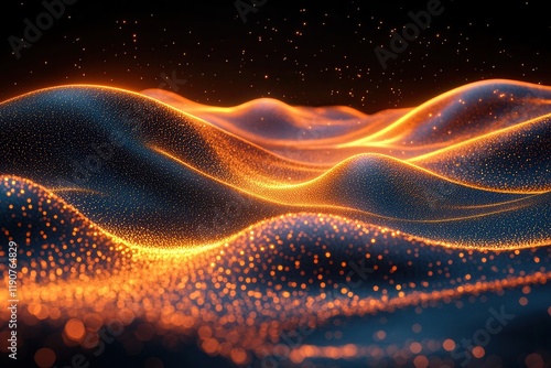 Visualizing flowing waves of energy with glowing particles in a dark spaceWall mural