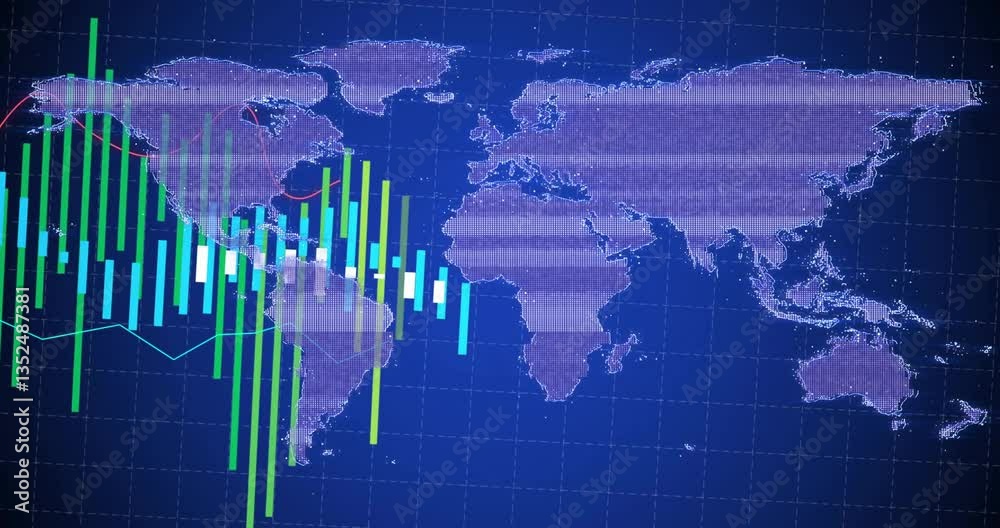 The watermark will not be included on Wall mural.: Visualizing global financial data, animation of graphs over world map background