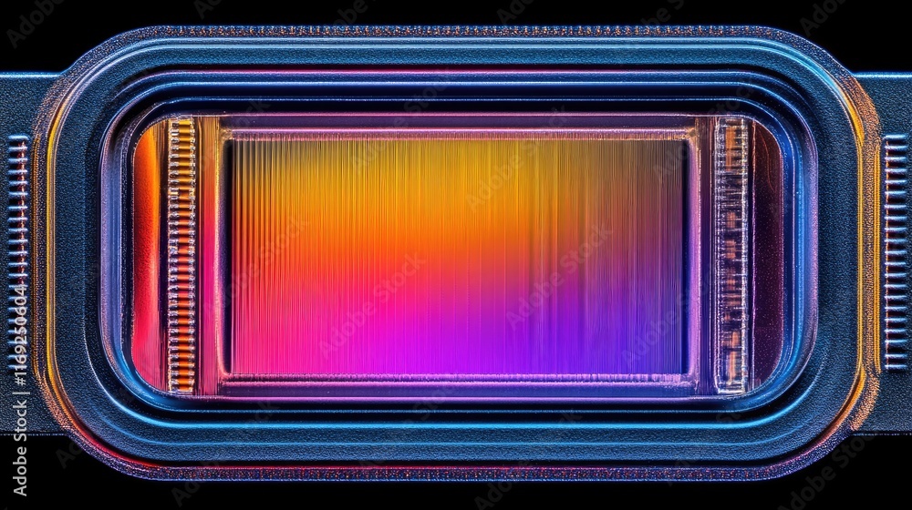 Wall mural vivid close-up of a sensor with vertical color gradients. ideal for tech backgrounds, website banner