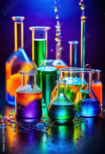 Wall mural : Vivid color transformations chemical processes showcasing bright hues dynamic changes laboratory exp