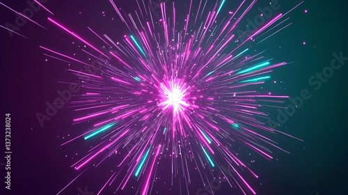 Wall mural : Vivid purple and green explosion in a sci-fi environment creating a striking visual contrast and dyn