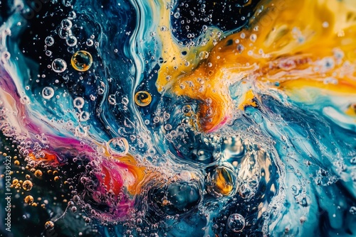 Wall mural vivid swirl of colors creates a captivating abstract image. rich blues and fiery oranges dance with