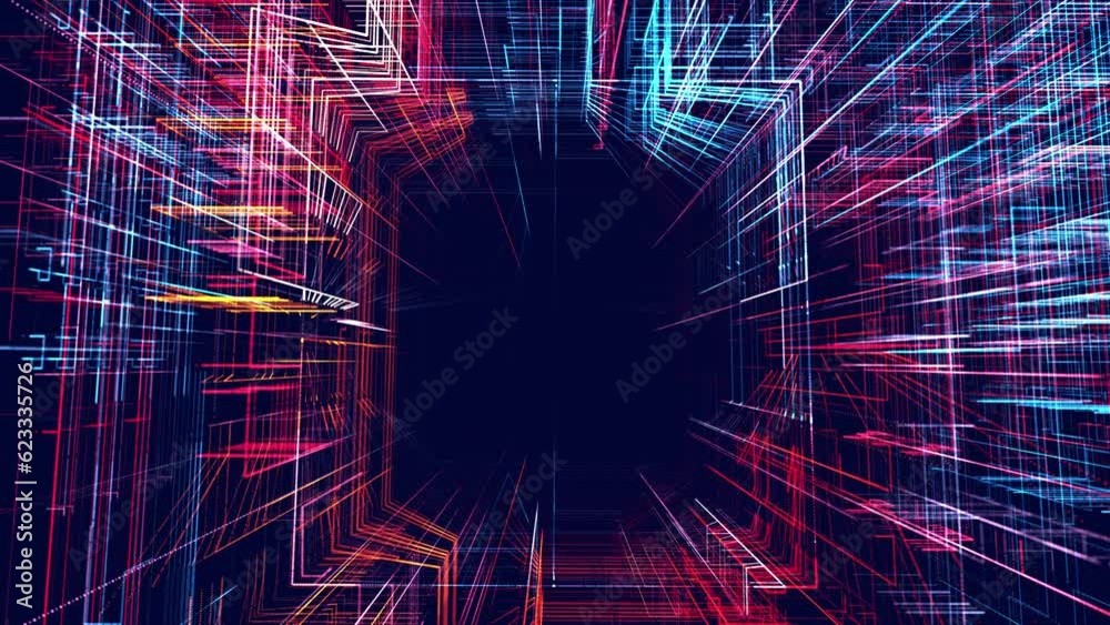 Wall mural vj loop abstract sci-fi bg glow particles form lines. hi-tech info technology. lines form hologram i