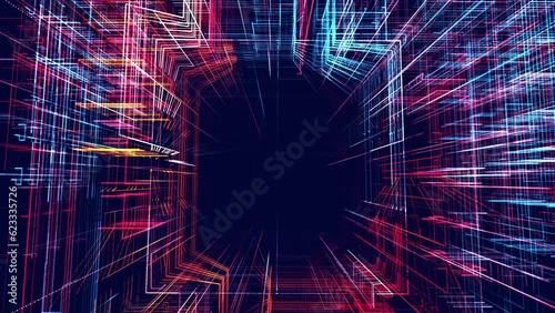 Wall mural : Vj loop abstract sci-fi bg glow particles form lines - hi-tech info technology - lines form hologram i