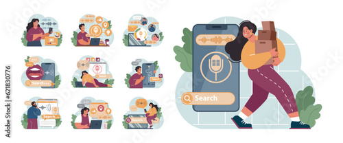 Wall mural voice search set. artificial intelligence virtual assistant. character - Wall murals Wall mural voice search set. artificial intelligence virtual assistant. character - Wall murals