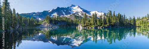 Wall mural : Volcanic mountain in morning light reflected in calm waters of lake -