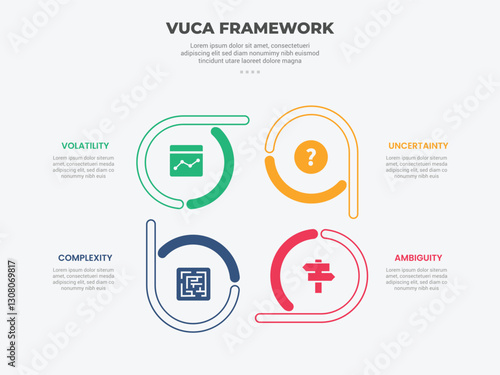 Wall mural vuca world model infographic outline style with 4 point template with creative circle on cycle circu