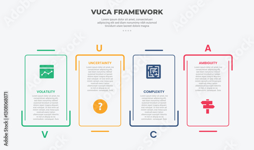 Wall mural vuca world model infographic outline style with 4 point template with creative rectangle box with se