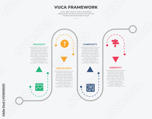 The watermark will not be included on Wall mural.: Vuca world model infographic outline style with 4 point template with roadway journey up and down on