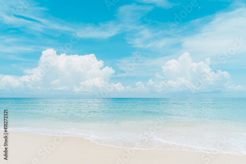 Wall mural beautiful tropical beach with blue sky and white clouds abstract texture background. copy space of s