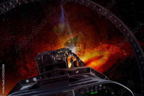 Wall mural war in an outer space between stars. explosion from the spaceship window. elements of this image fur