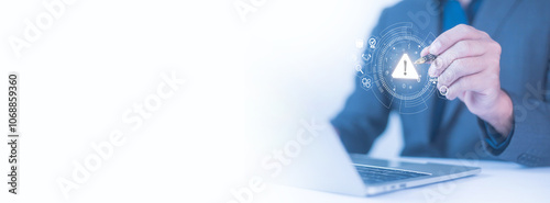 Wall mural : Warnings exclamation mark alerts in computer systems to be aware of the dangers and risks of cyberat