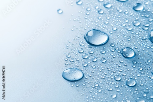 Wall mural : Water droplets forming a shiny layer on surfaces, creating a stunning textured background design