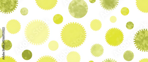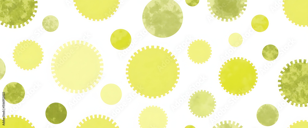 The watermark will not be included on Wall mural.: Watercolor background with yellow and green circles in a repeating pattern -