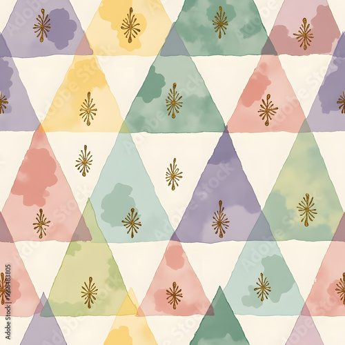 Wall mural : Watercolor geometric pattern with overlapping triangles and gold accents -