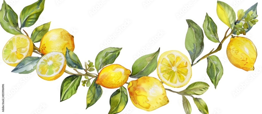 Watercolor lemon wreath isolated on white background - copy space image - place for adding text and deWall mural