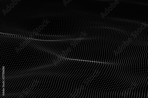 Wall mural wave 3d. wave of particles. futuristic point wave. design for poster. technology vector background.