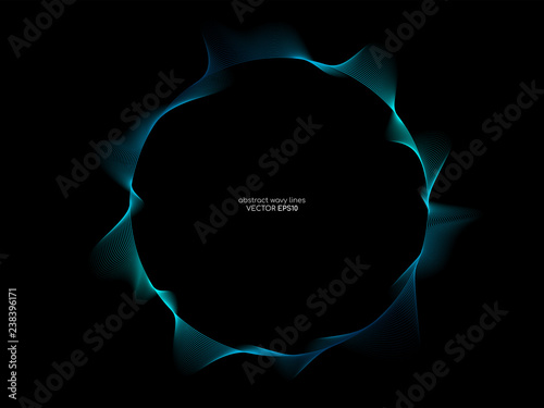 Wall mural wave circle line and curve pattern flowing in blue green color isolated on black background. vector