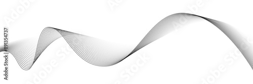 The watermark will not be included on Wall mural.: Wave dots abstract pattern - flow of black curved dotted lines vector illustration isolated on white