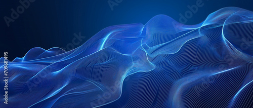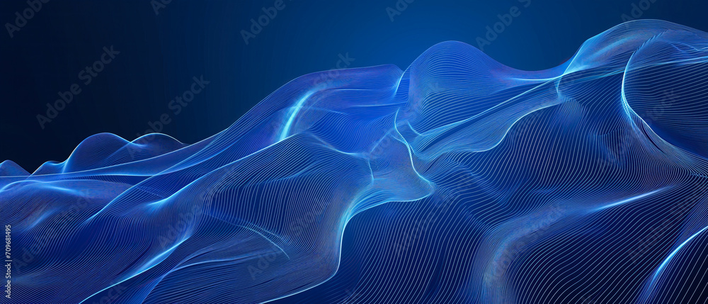 The watermark will not be included on Wall mural.: Wave of blue lines - abstract digital technology background - abstract wave moving lines flow particle