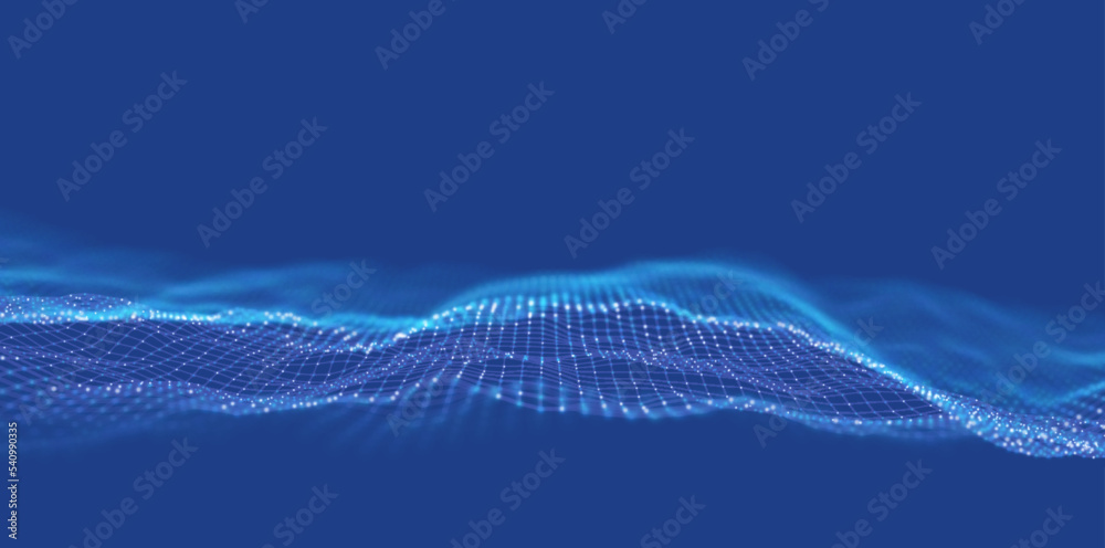 Wall mural wave of blue particles. abstract technology flow background. sound mesh pattern or grid landscape. d