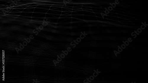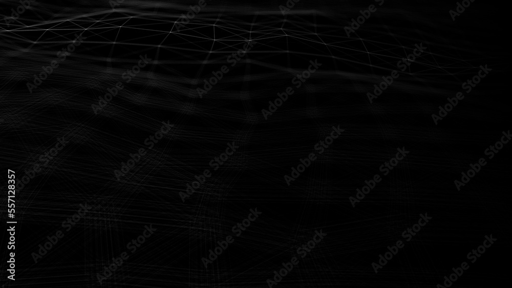 The watermark will not be included on Wall mural.: Wave of digital particles on a black background - abstract interlacing lines and points - digital conn