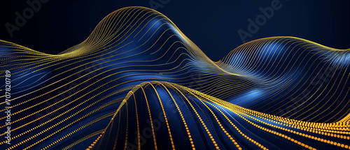 Wall mural : Wave of dots and weave lines - abstract digital technology background - abstract wave moving dots flow