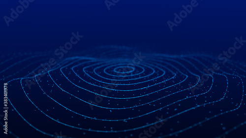 Wall mural : Wave of particles - abstract background with a dynamic wave - futuristic wave of blue dots - futuristic