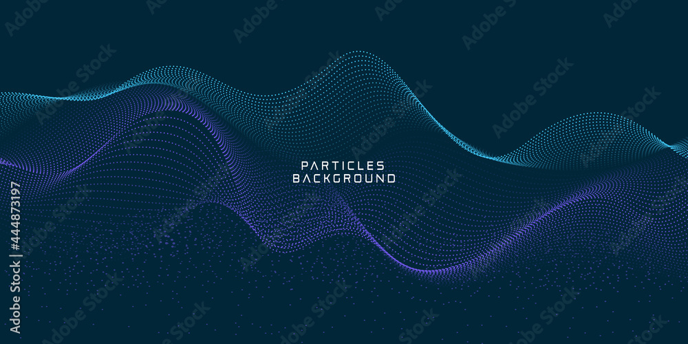 Wall mural wave vector element with abstract colorful dots line on dark background. particles flow motion illus